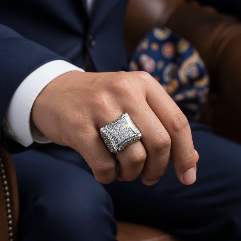 Italy 925 Silver Hip Hop Men's Ring (Stamps)-11 US
