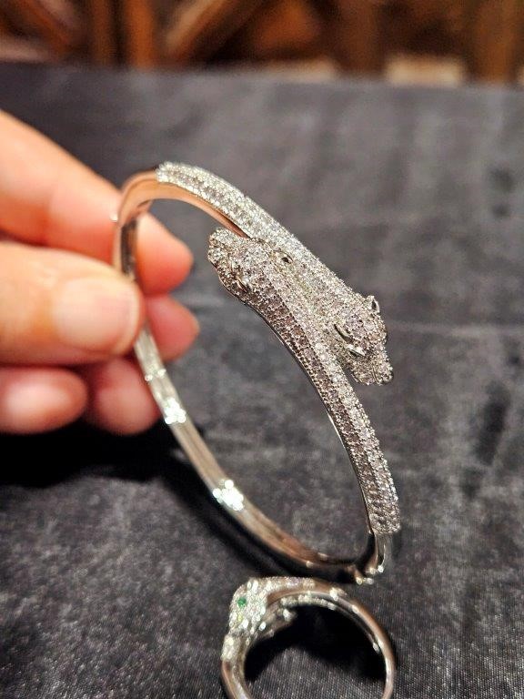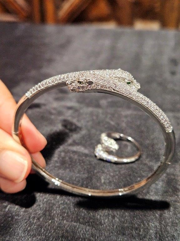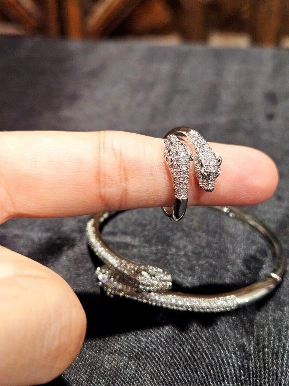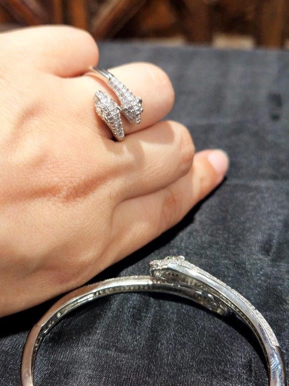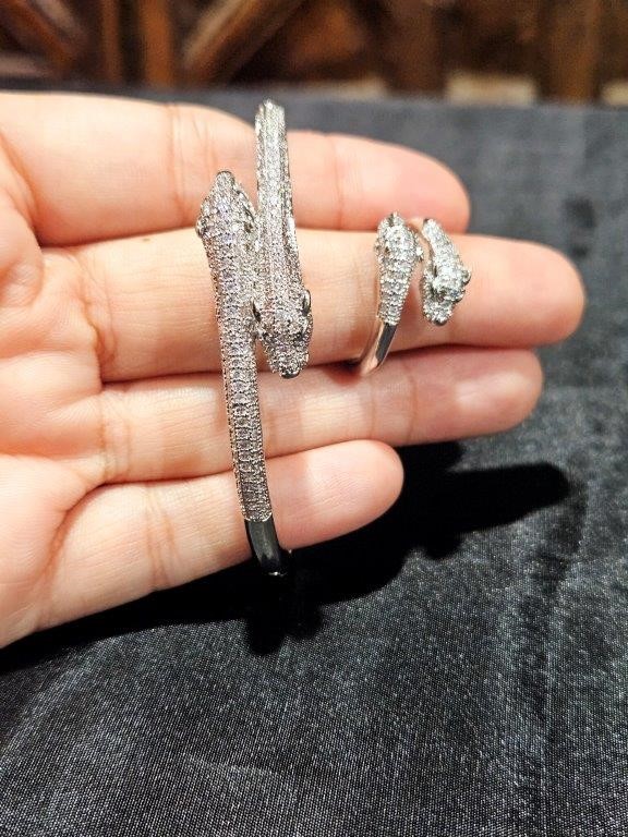 Set 18KGold-filled/Italy Stamped White Gold Filled Dragon Bangle & Ring