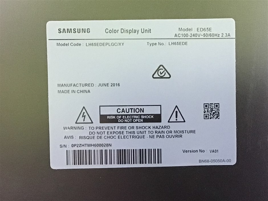 Samsung ED65E 65” HD LED Display