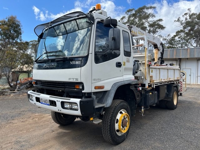 2004 Isuzu 750 Crane Truck and Side Tipper