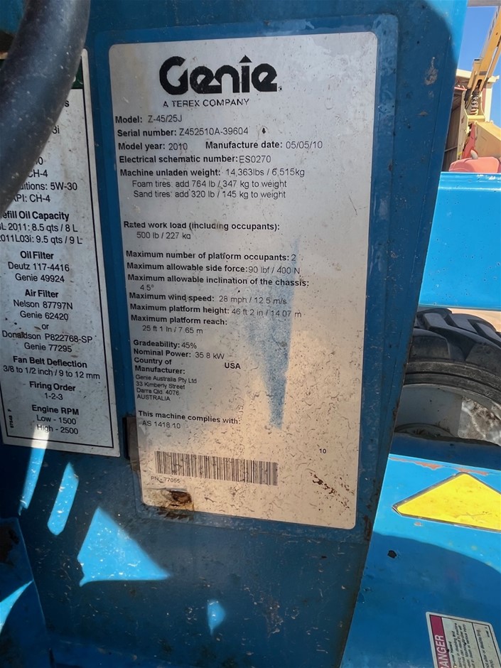 2010 Genie Z45/25IC Knuckle Boom - 45ft (13.7m) - Diesel - Kalgoorlie