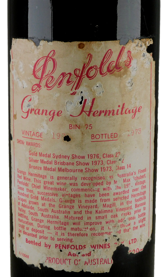 Penfolds Bin 95 Grange Hermitage 1972 (1x 750mL) SA.
