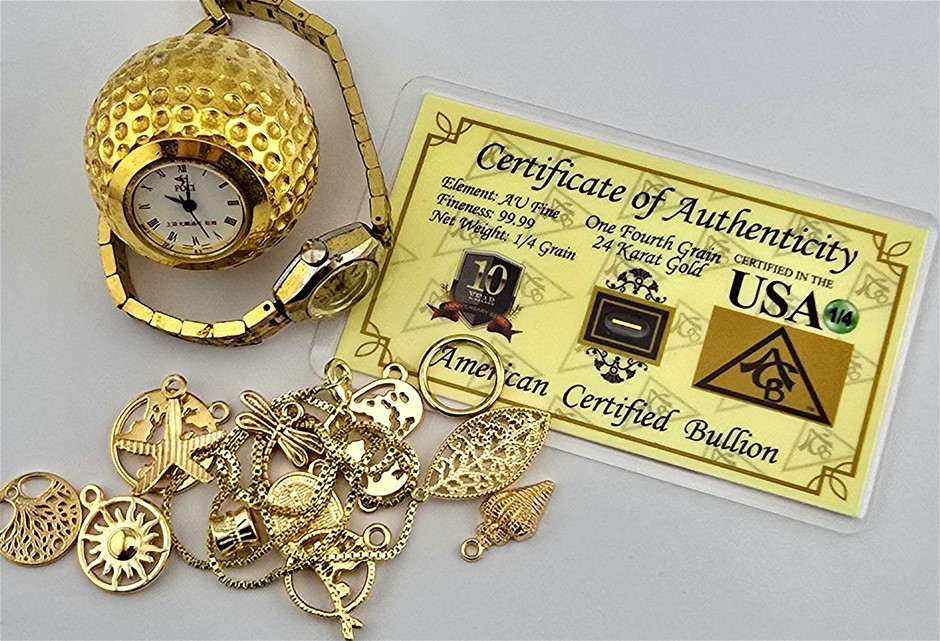 • Bulk Lot of Scrap that May Include 24 Carat, 14 Carat, 9 Carat and Other Various Solid Gold, Plated Gold and Gold Tone Items