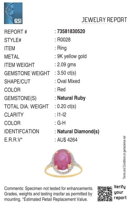 Yellow Gold Natural Ruby & Diamond Ring with Valuation