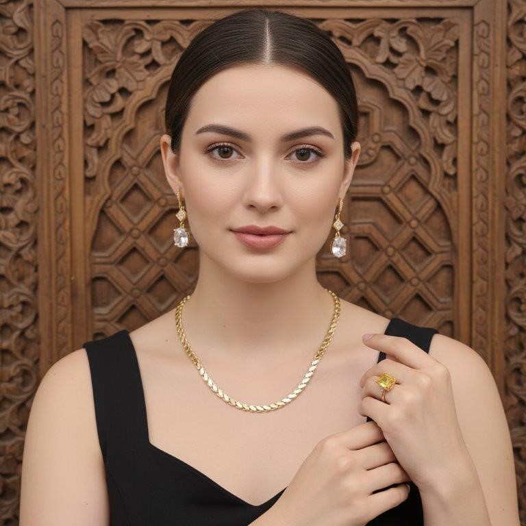 3pcs x 18KGF/Italy Stamped Yellow Gold Filled Chain & Ring & Earring-clearance sales