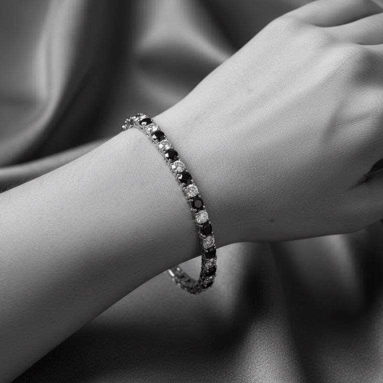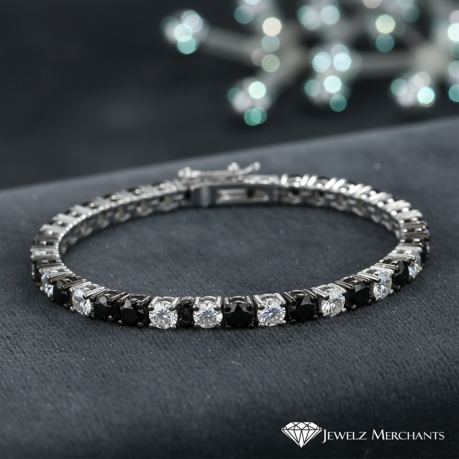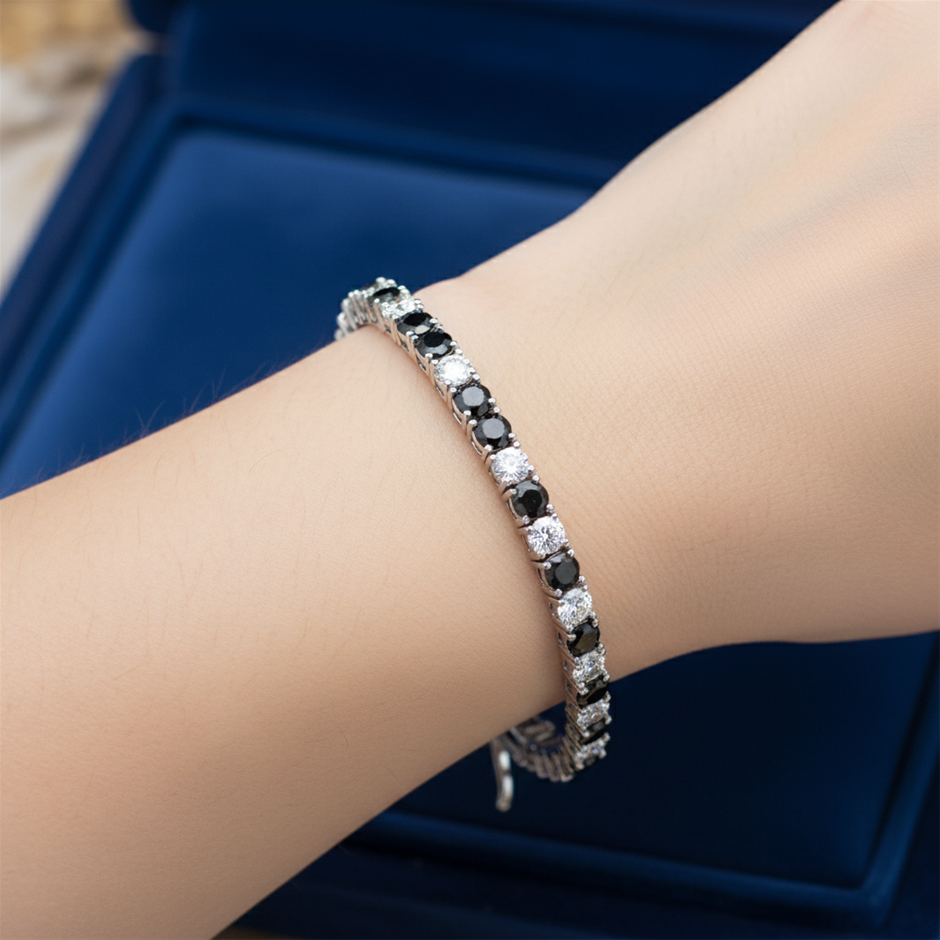 GRA Moissanite white & Black Brilliant Cut stone Tennis Bracelet -S925-17.3cm