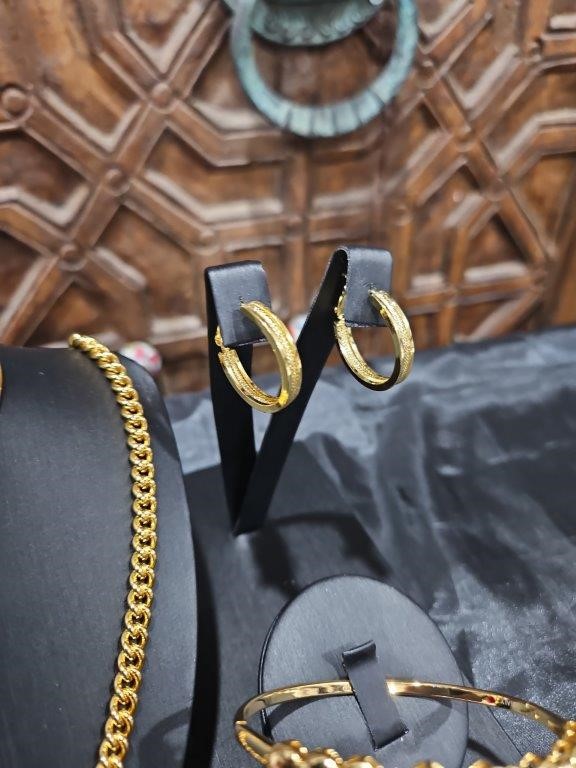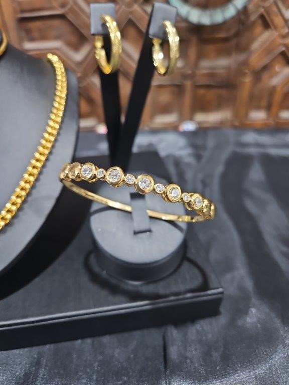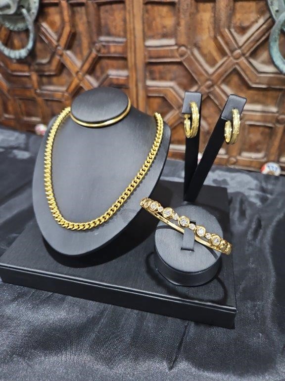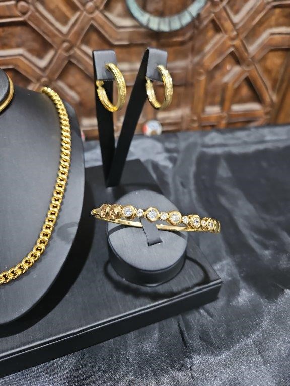 3pcs x 18KGF/Italy Stamped Yellow Gold Filled Chain & Bangle & Earring-clearance sales