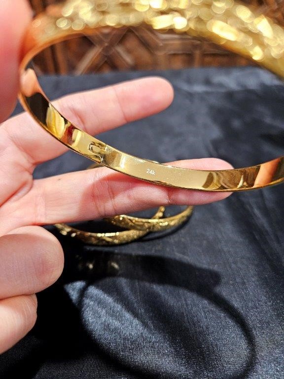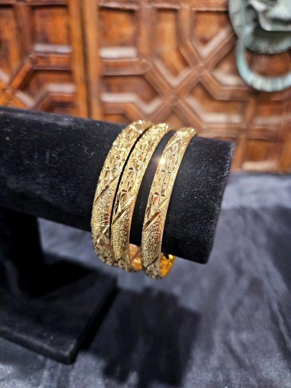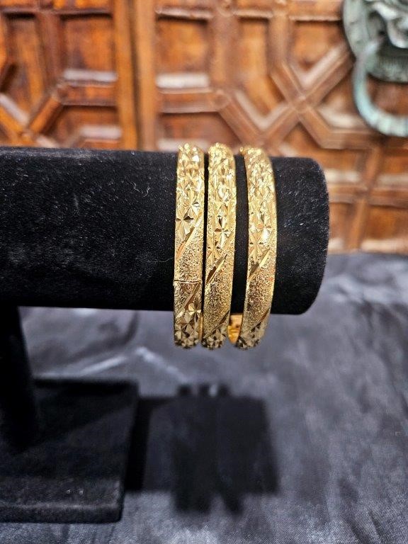 6pcs x 22KGoldFilled/ITALY Triple Yellow Gold Plated Bangles with Stamps