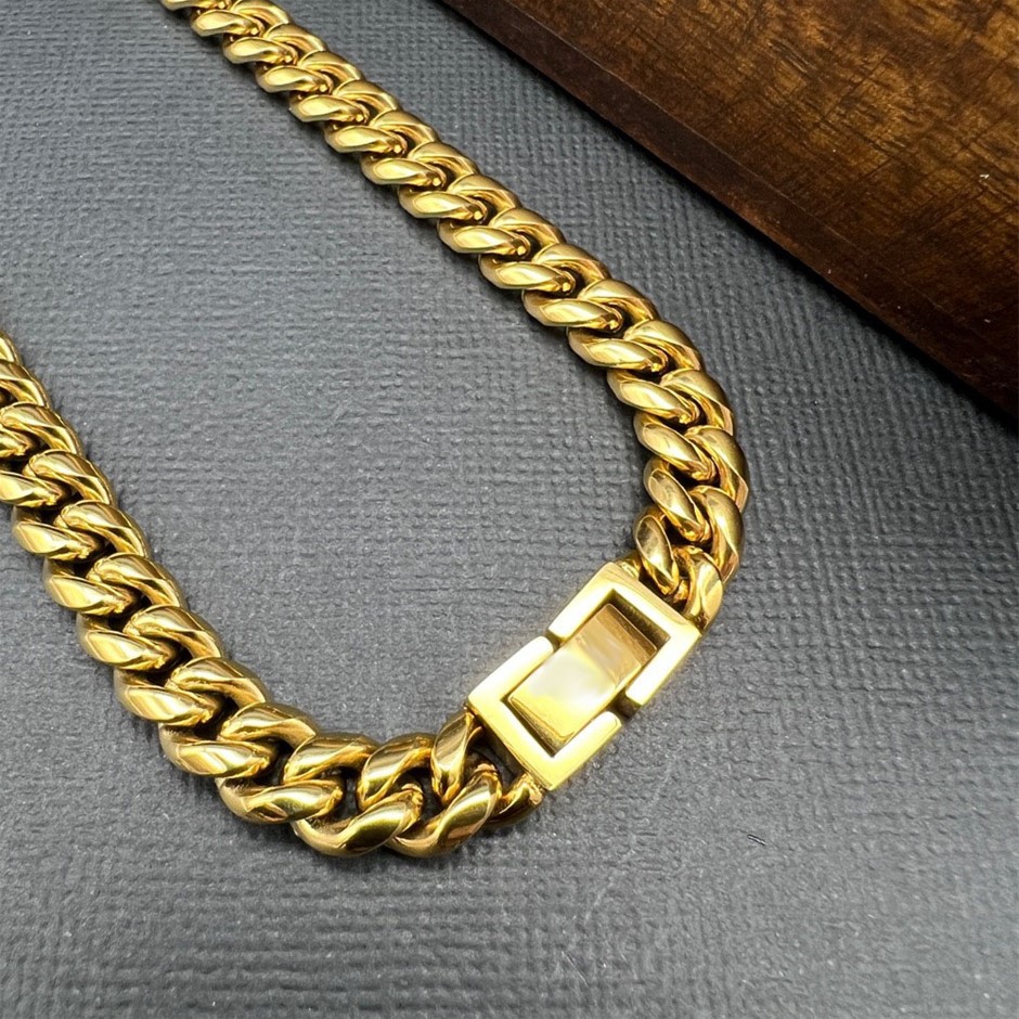 Opulent Galleria - 18K Gold-Filled Cuban Chain Necklace, 8MM Wide - 66cm