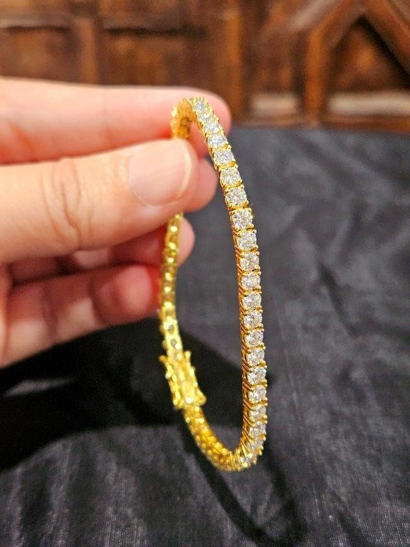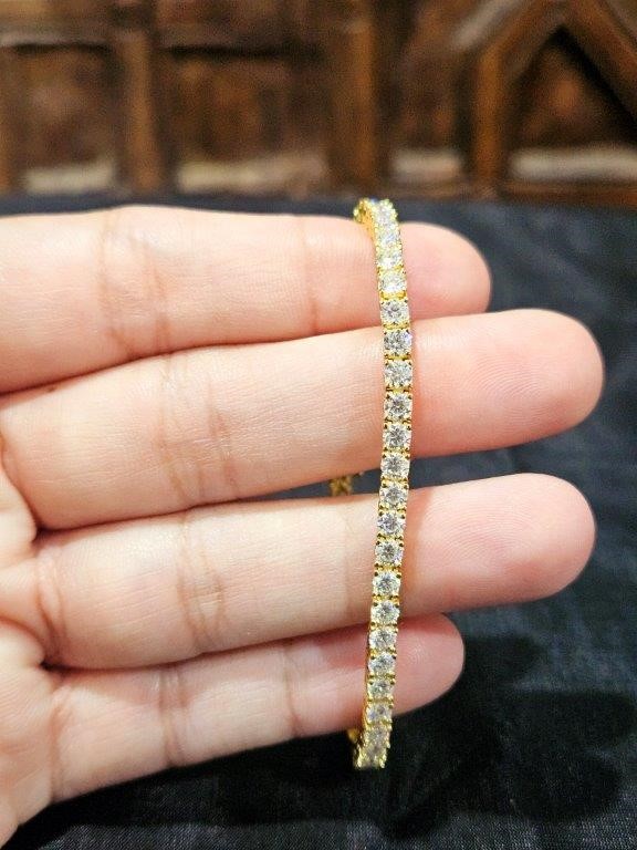 • Discover our Moissanite Diamond Brilliant Cut Bracelet , crafted with high-quality solid 925 sterling silver and plated in 18K real solid yellow gold.