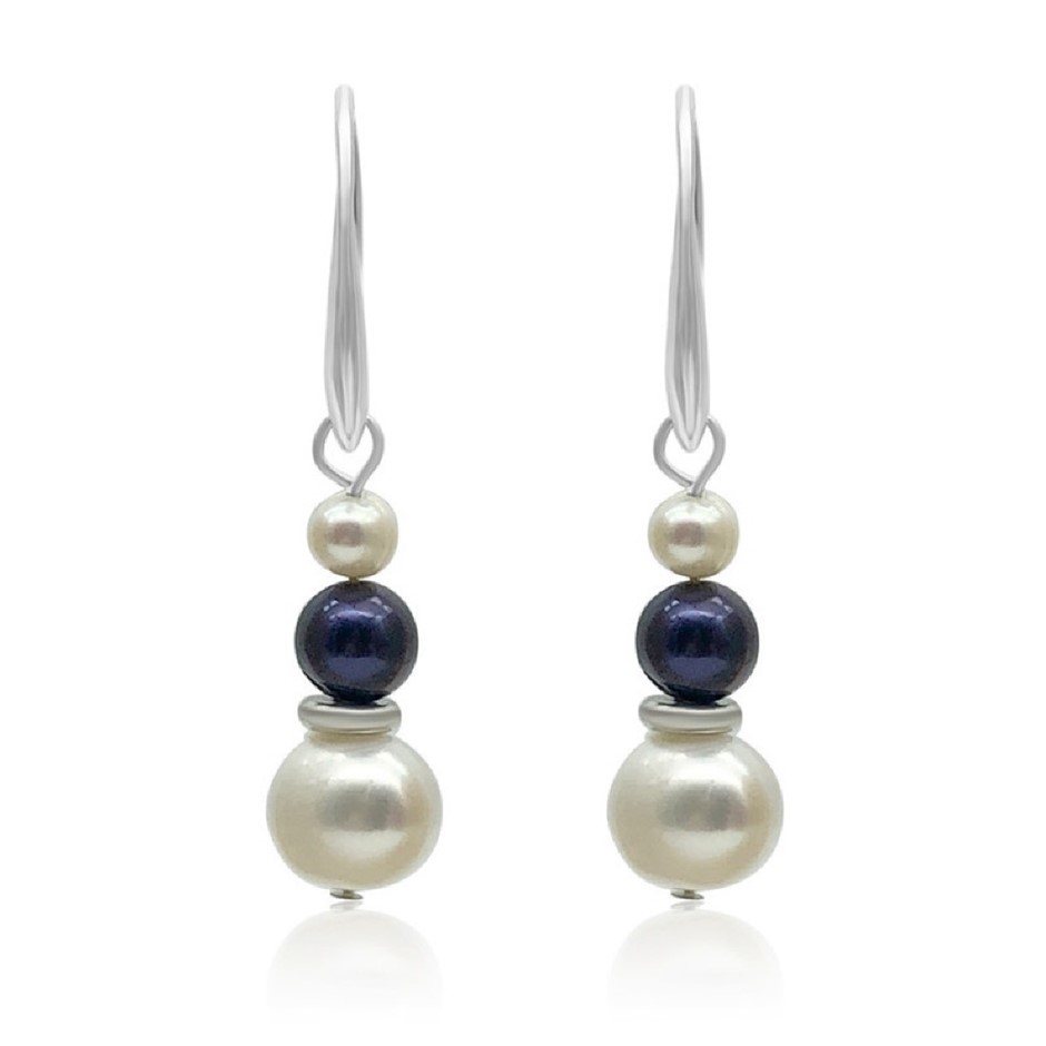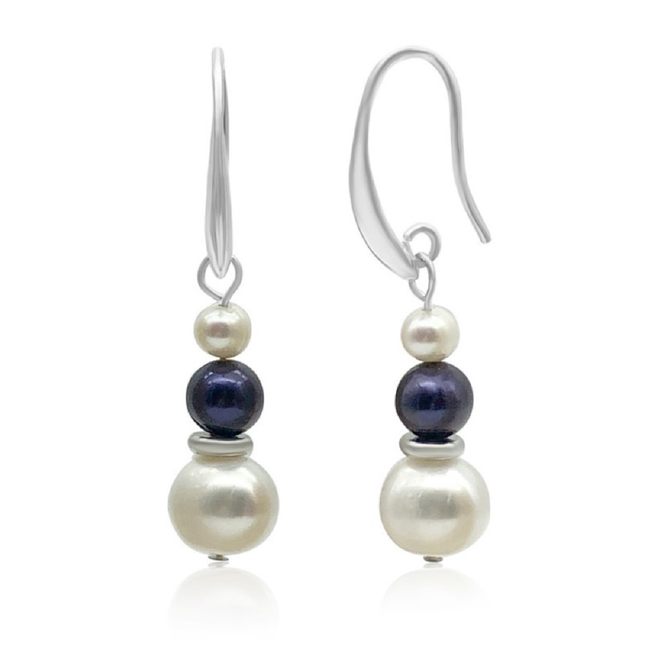 Luxury 7-8mm White & Black Freshwater Pearl with Real Platinum Plated Necklace, Bracelet & Earring Set