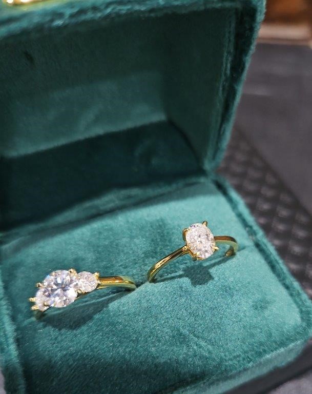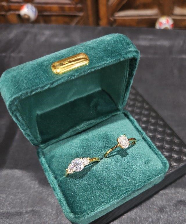 • 2xpcs Moissanite Diamond 1.0ct each Round White Brilliant Cut Rings , crafted with high-quality solid 925 sterling silver and plated in 18K real solid Yellow gold. This luxurious piece, stamped S925, comes with a GRA Certificate and is 100% guaranteed to pass the diamond tester.