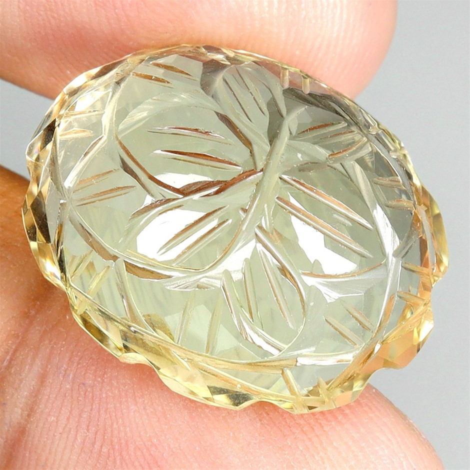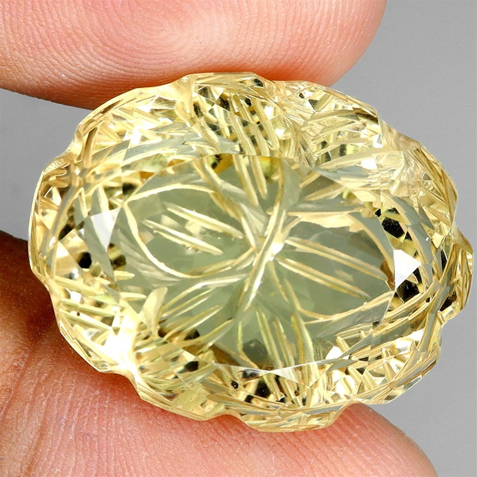 39.85ct Oval Flower Carved Lemon Quartz Gemstone - 1Pc