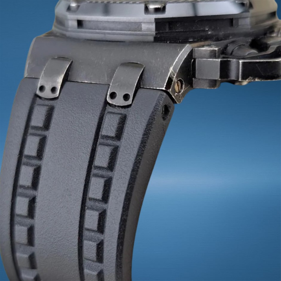 • STRAP: BLACK RUBBER STRAP WITH TITANIUM PIN BUCKLE