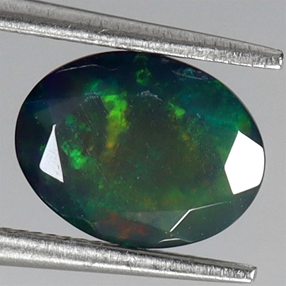 1.02ct Oval Facet Cut Play Of Color Black Opal Gemstone - 1Pc