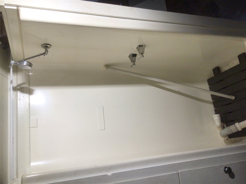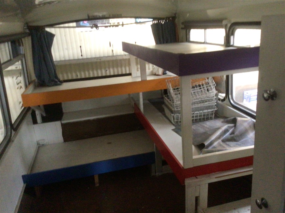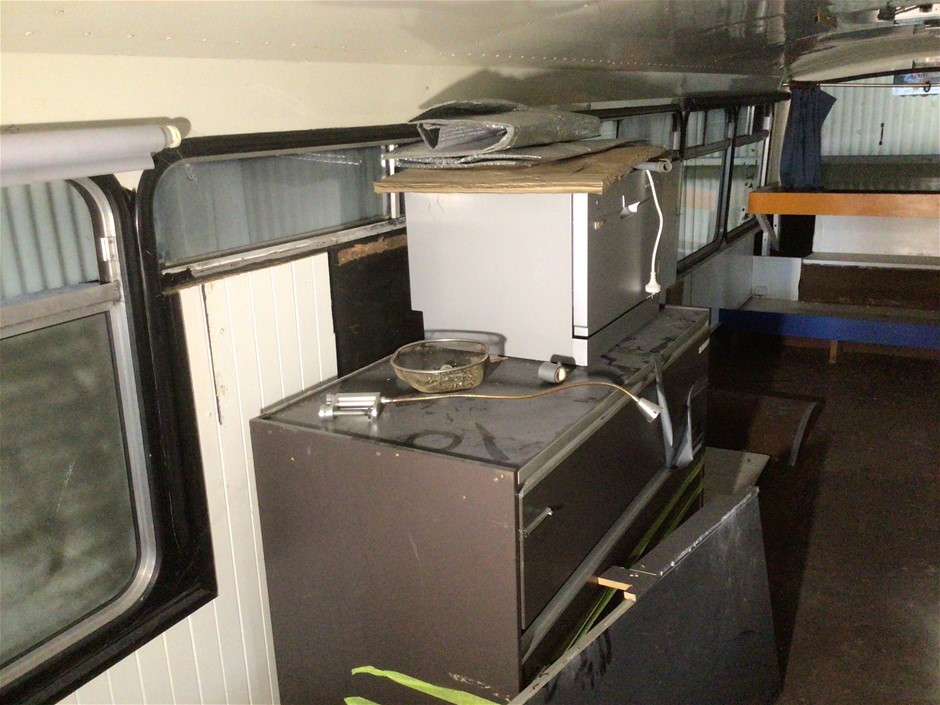 Note: Does run battery flat tower toilet, sink, bunks, dish washer, interior dimensions: 11000mm x 2500mm (W)
