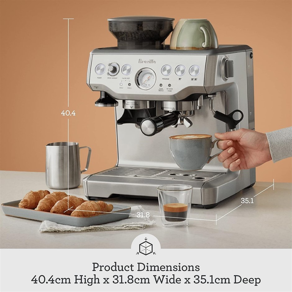BREVILLE the Barista Express Coffee Machine with Milk Jug Thermal, Espresso Machine with Coffee Grinder (BES875BSS/BKS) - Brushed Stainless Steel. NB: used, no box, unit only. (Code: B09VG598FH-U7) (140313-7)