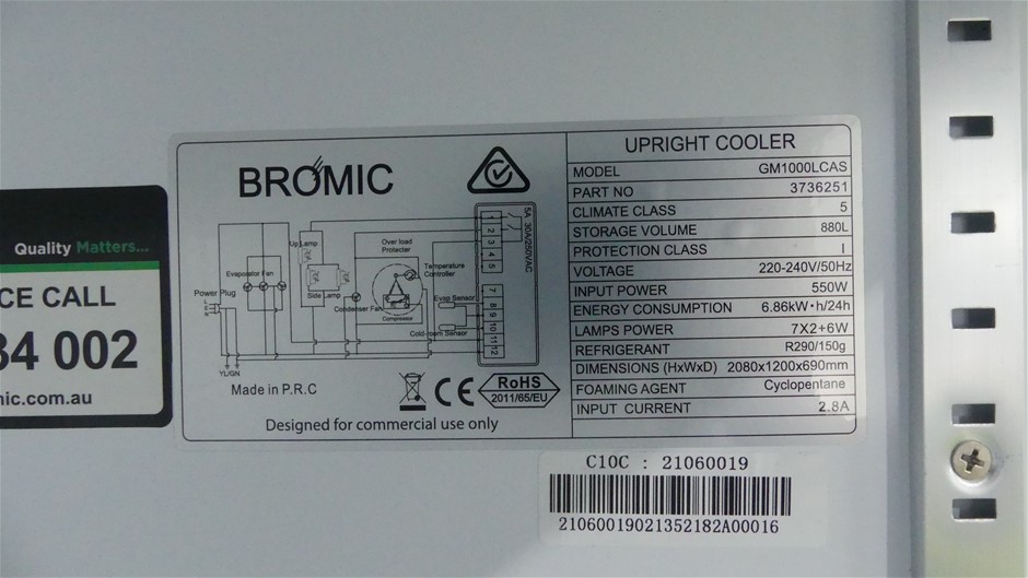 Bromic GM1000LCAS Self Contained 2 Door Upright Refrigerator