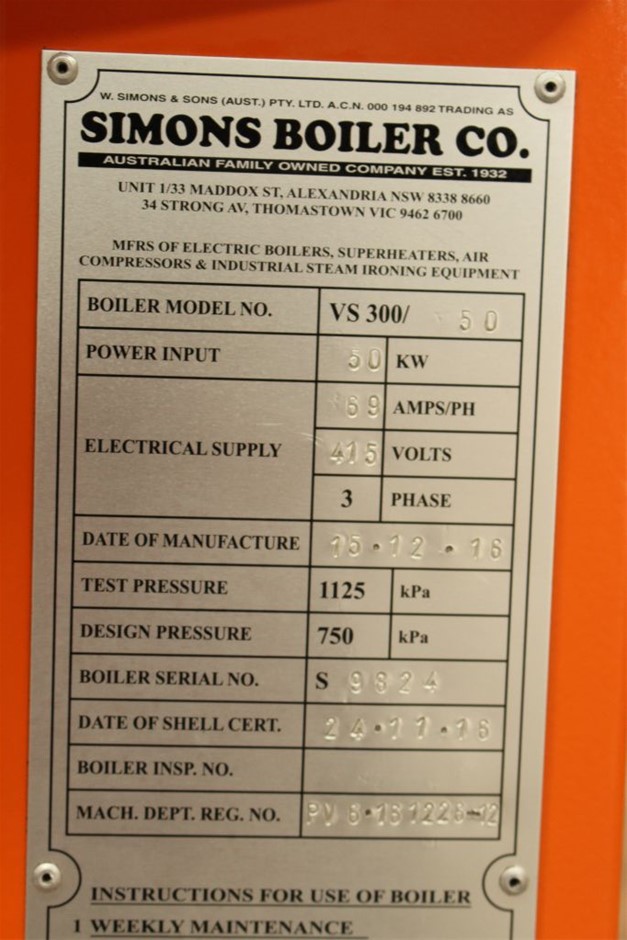 Electric Steam Boiler, "Simons", Model VS300/50