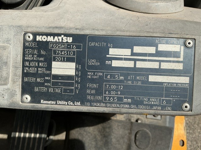 2011 Komatsu FG25HT-17 Forklift - 2.5t - 3.0m - LPG