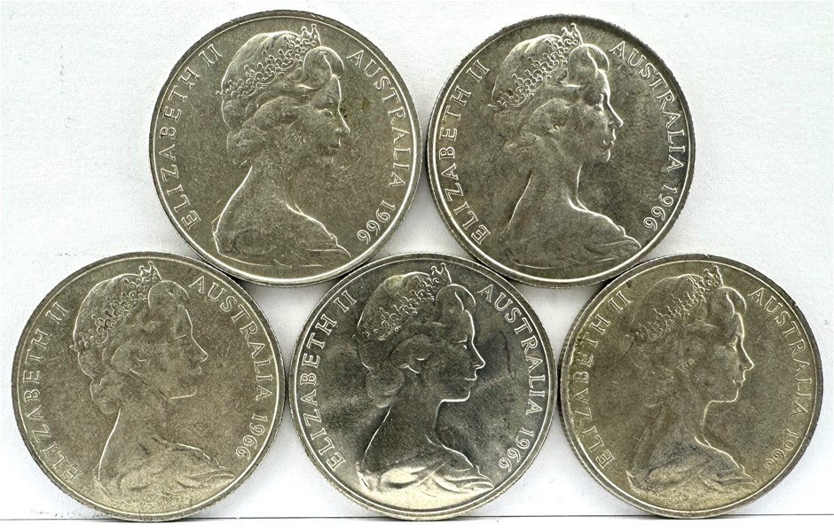 • A Collection Of Five 1966 Round Australian 50c Coins.