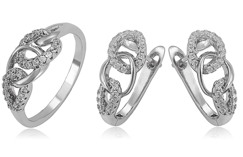 Italy Set Jewelry PT950 Plated Ring & Earring (stamped PT950/Italy)