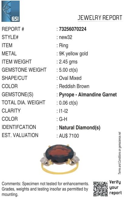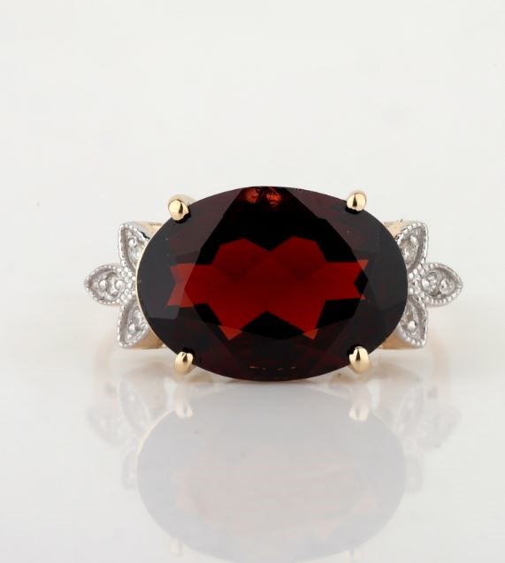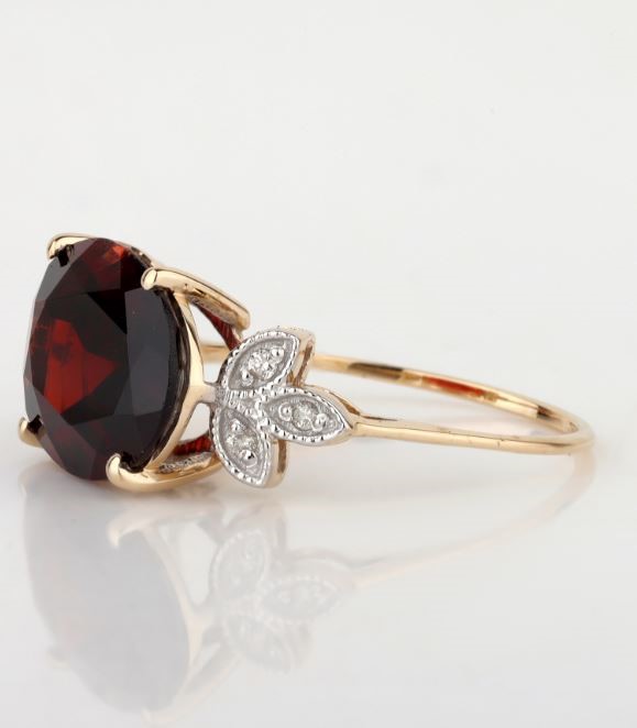 Yellow Gold Natural Garnet & Diamond Ring with Valuation