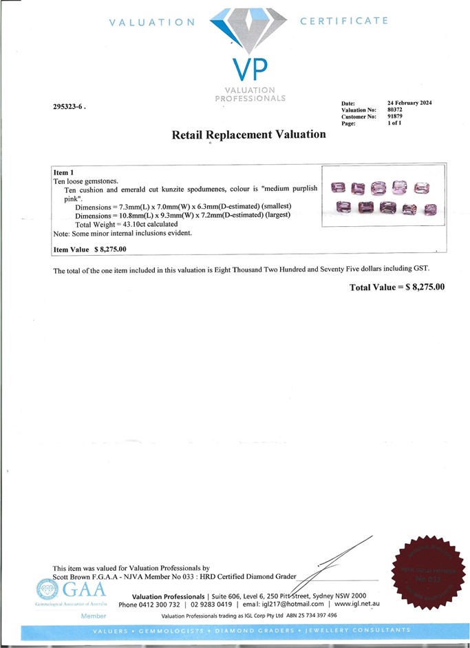 The Certificate of Authenticity means that the actual item for sale has been assessed by a fully qualified specialist jewellery valuer. The specialist jewellery valuer requires knowledge of gemmology, jewellery manufacture, precious metal markets, world gem markets, supply and demand factors both overseas and within Australia, taxation law requirements, general retail practices and the final combination of all the above factors in the principle and procedures of a jewellery valuation. They inspect and assess the jewellery item using a hand lens taking note of several key factors-