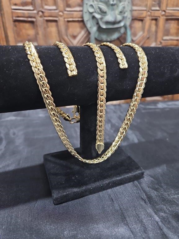 18K/Italy Set Solid Heavy Yellow Gold Filled Chain & Bracelet & Earrings