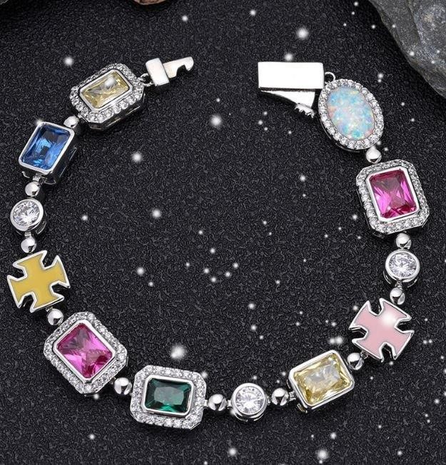 18k white Gold Filled Multi Stone Bracelet stamped(18K)-20cm-Quality Guarantee