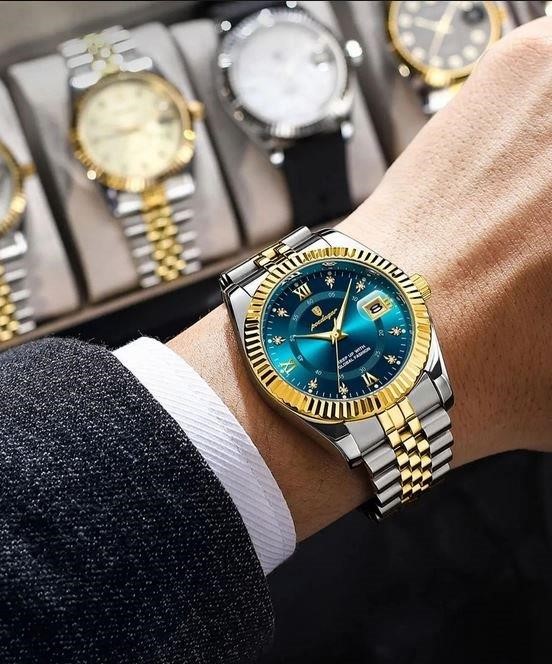 • The watch also features a day and date dial. This provides the practical benefit of displaying the current day/date, allowing the wearer to quickly and easily reference the date without needing to consult another device.