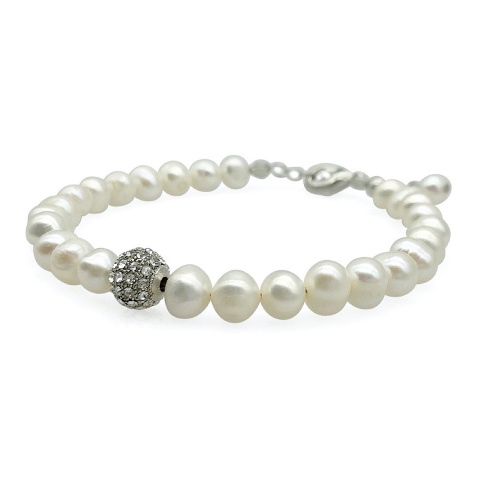 • Stone Dimension: Freshwater Pearls: 7-8mm, Rhinestone Spacer: 8mm.