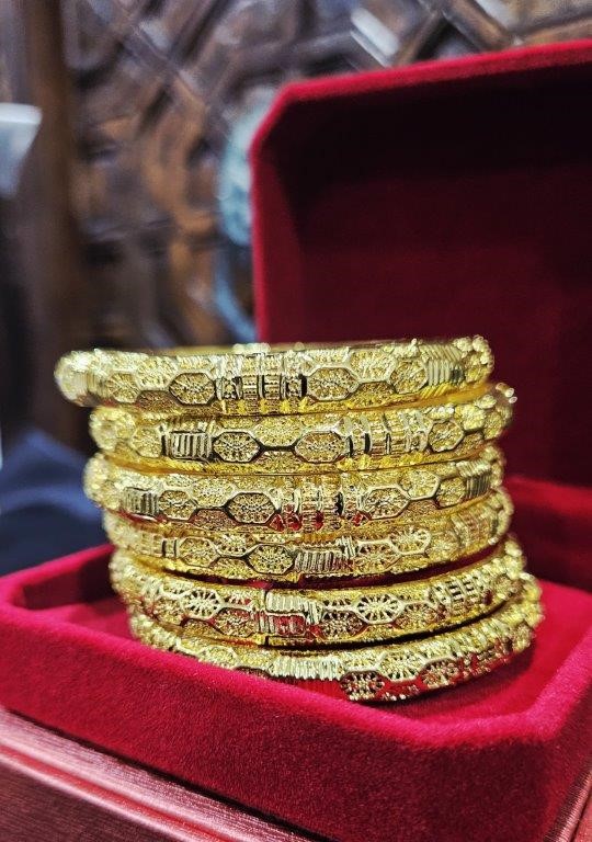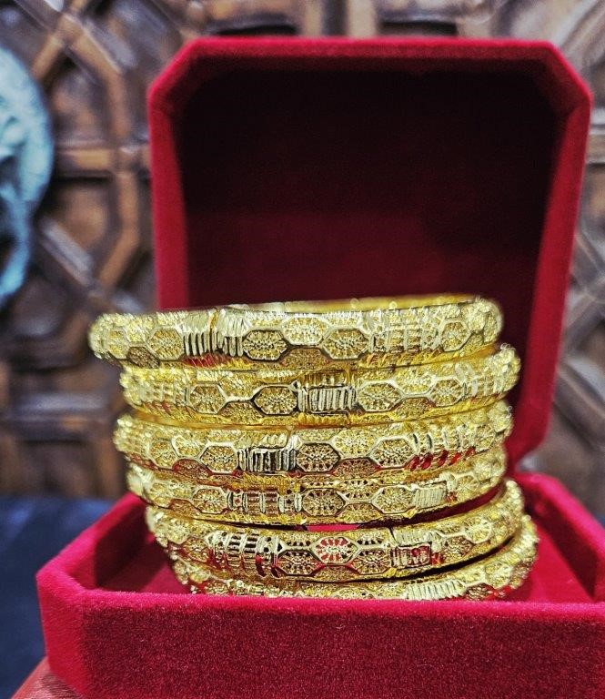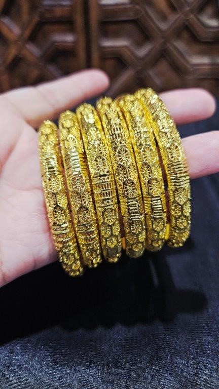 6pcs x 22KGold-filled/ITALY Triple Yellow Gold Plated Bangles with stamp