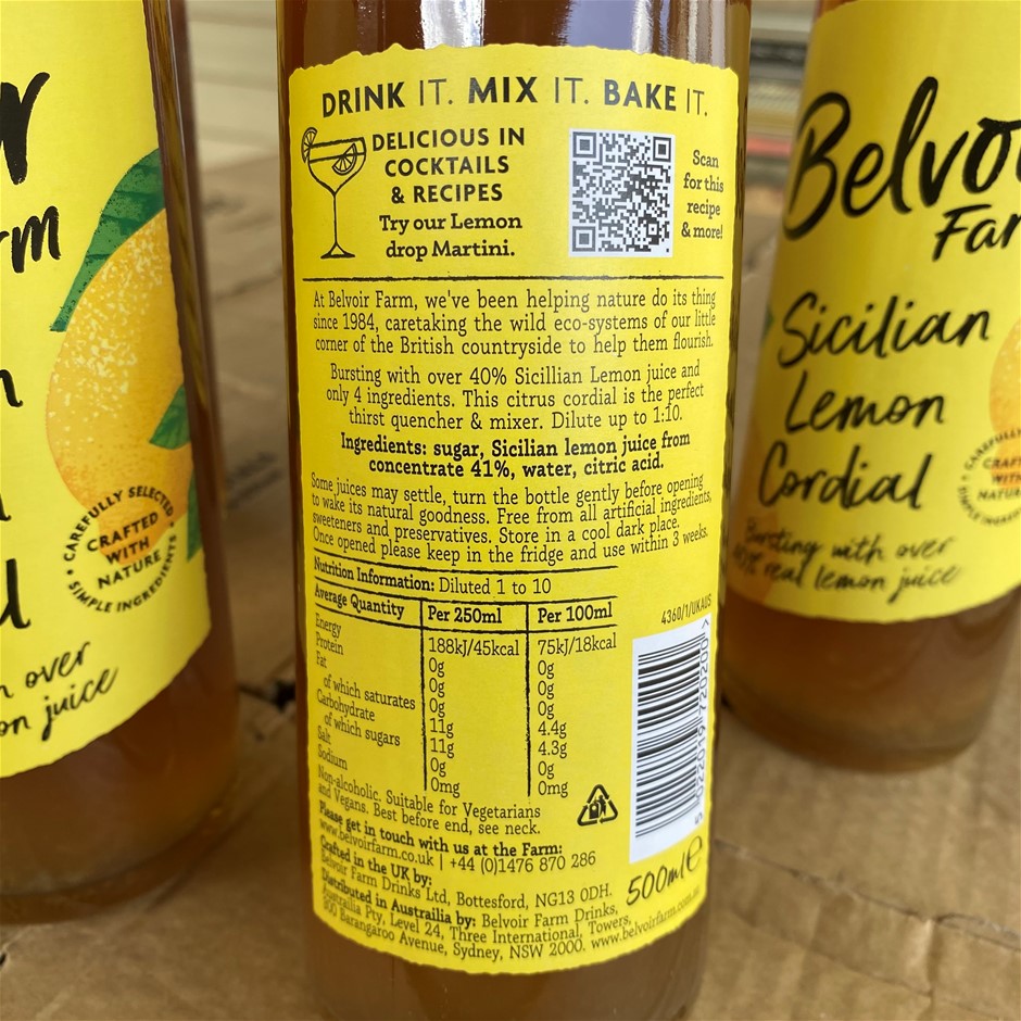 6x Belvoir Farm Sicilian Lemon Cordial 500ml