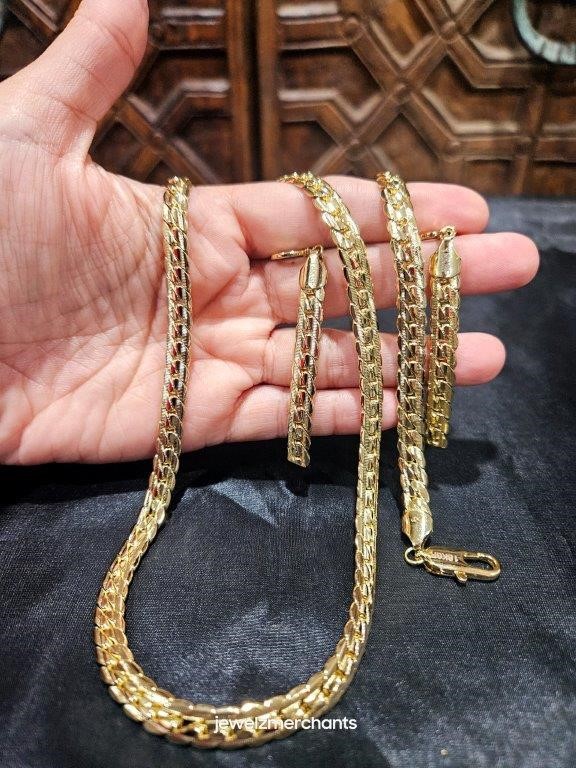 18KGold Filled/Italy Stamped Set Yellow Chain and Bracelet & Earrings
