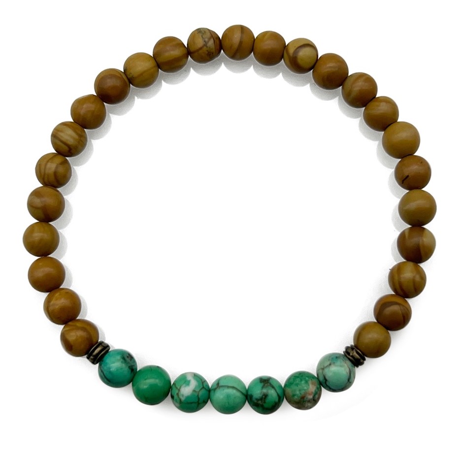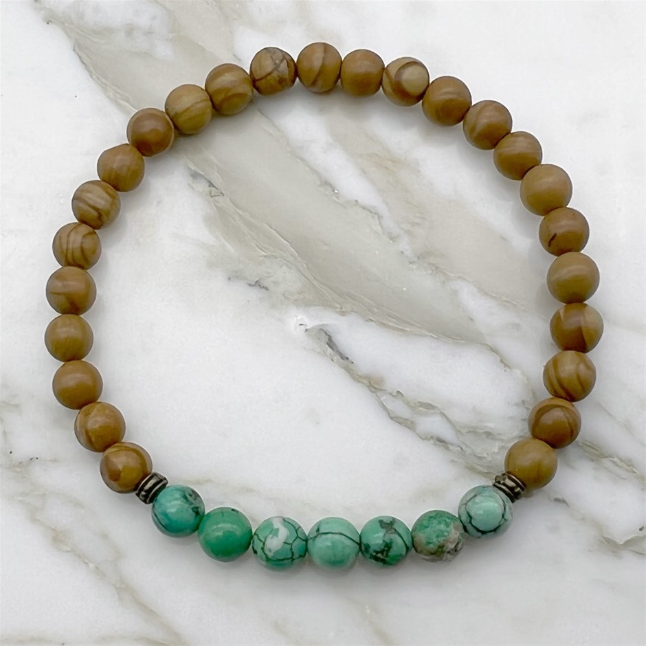 Men`s Australian Made 6mm Agate & Woodlace Stretch Bracelet.