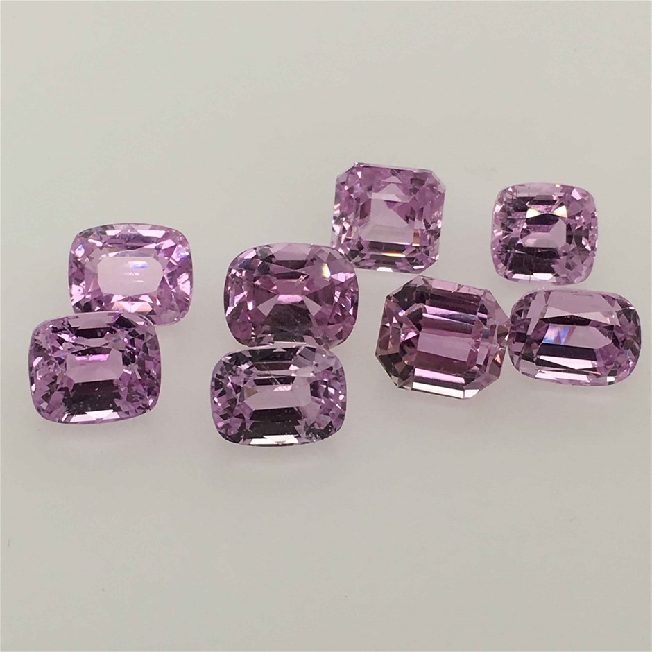 • Eight cushion and emerald cut kunzite spodumenes