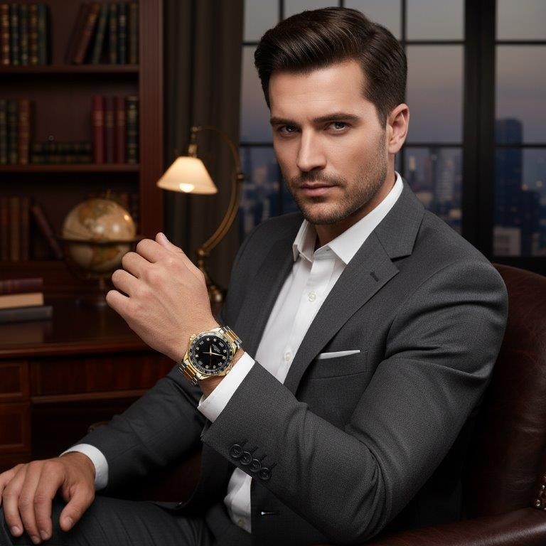 High Quality Simulated Diamond Men`s Quartz Watch