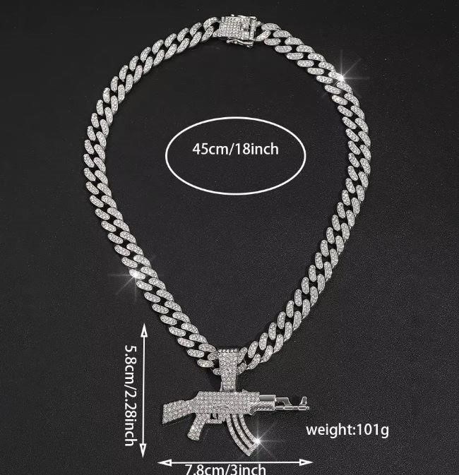 AK47 Gun Pendant Necklace in triple white gold plating