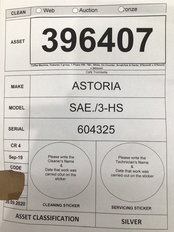 | Part of Sale | Coffee Machines, Ice Cream Machines, Display Fridges | ||||||||||
