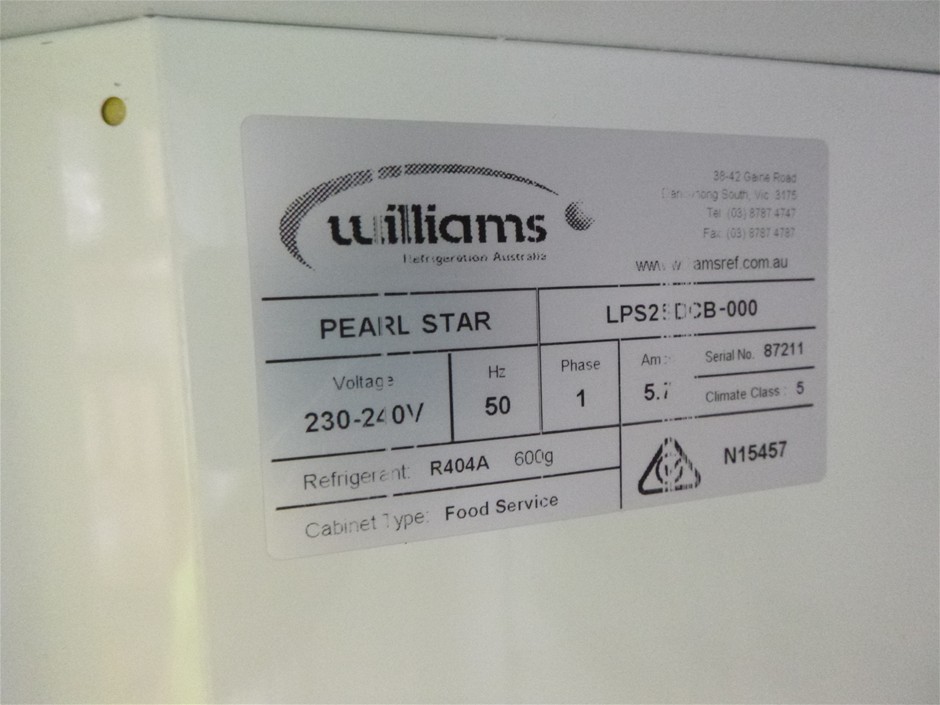 Williams Pearl Star LPS 25DCB Mobile Dual Solid Door Upright Refrigerator