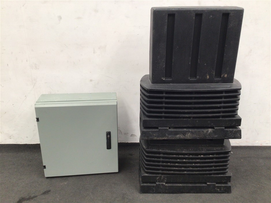 • Comprising of:2x Unbranded Poly-Pits (Dimensions: 700x420x880mm approx.);1x NHP Electrical Enclosure (Dimensions: 600x240x650mm approx.);
