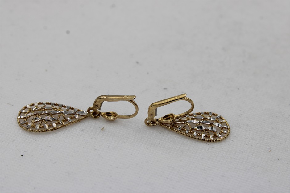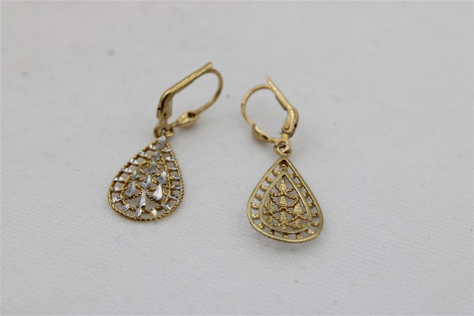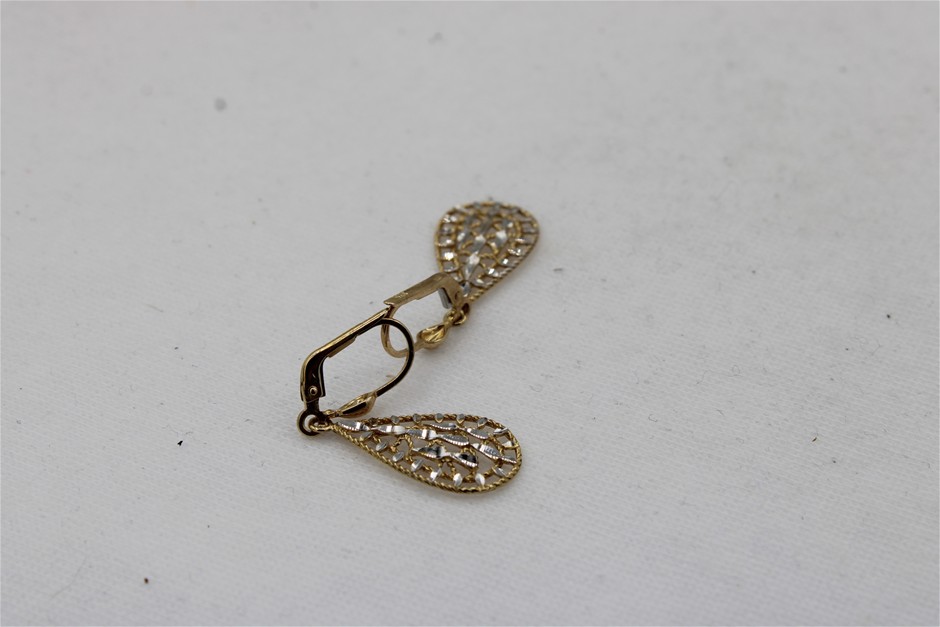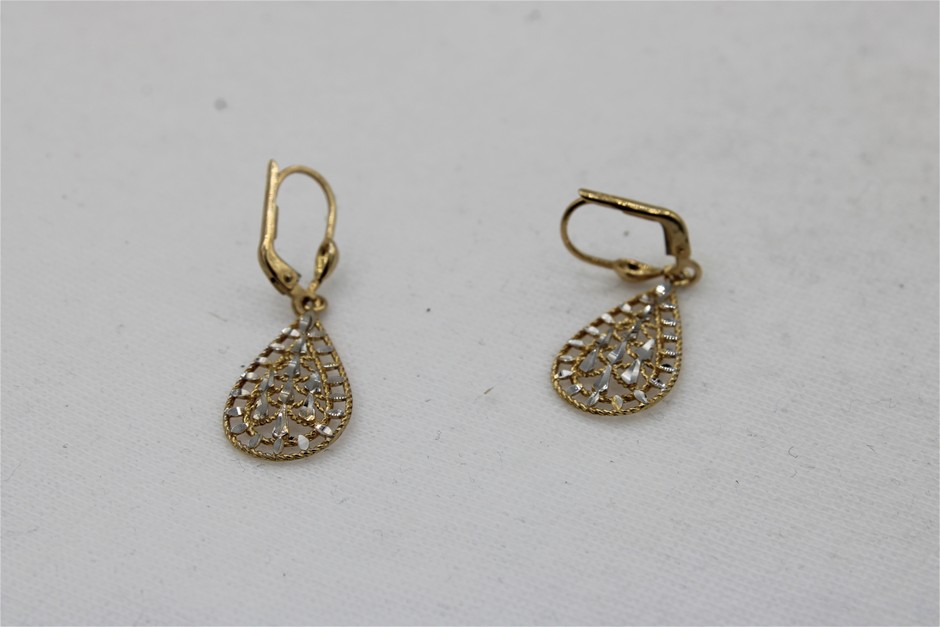 1 x Stamped Pair 9ct Yellow Gold, 2 Tone Drop Earrings