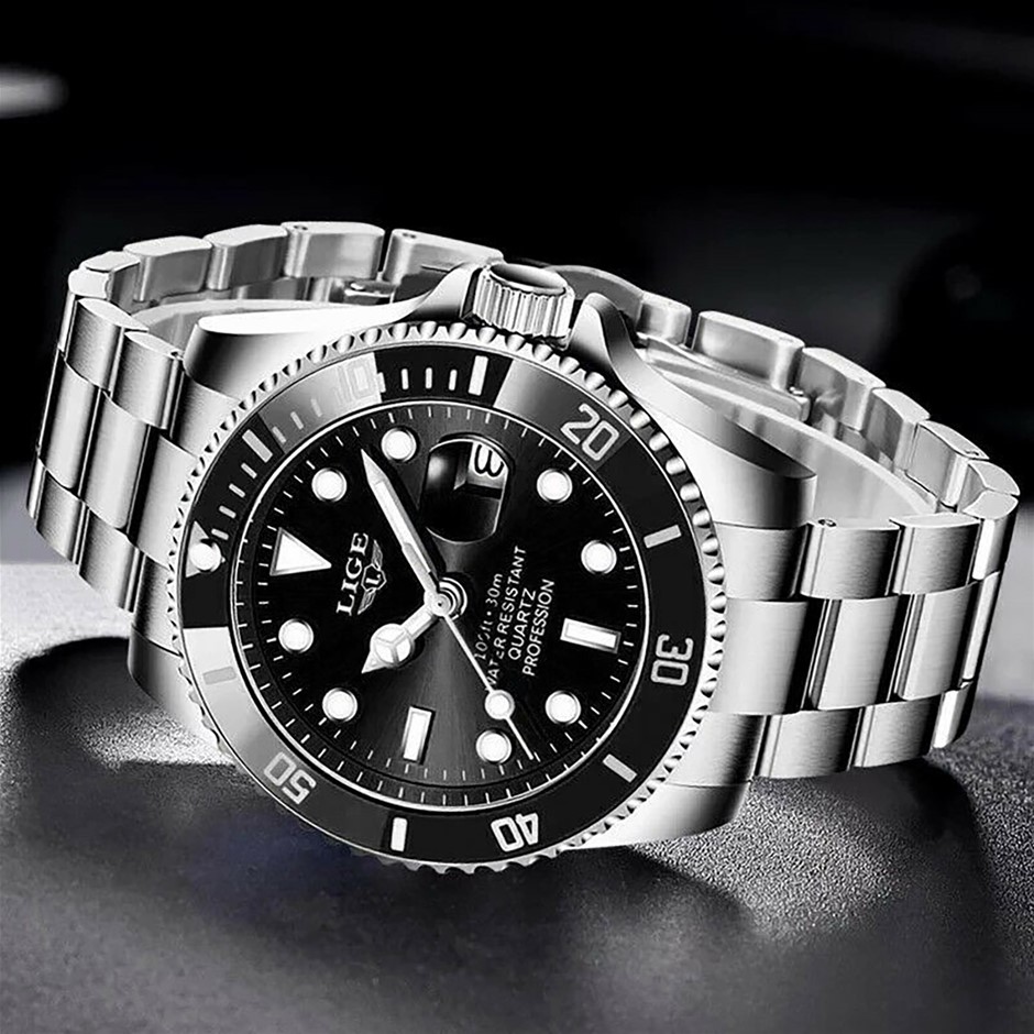 LIGE Military Style SS Men`s Quartz Watch