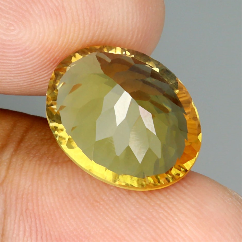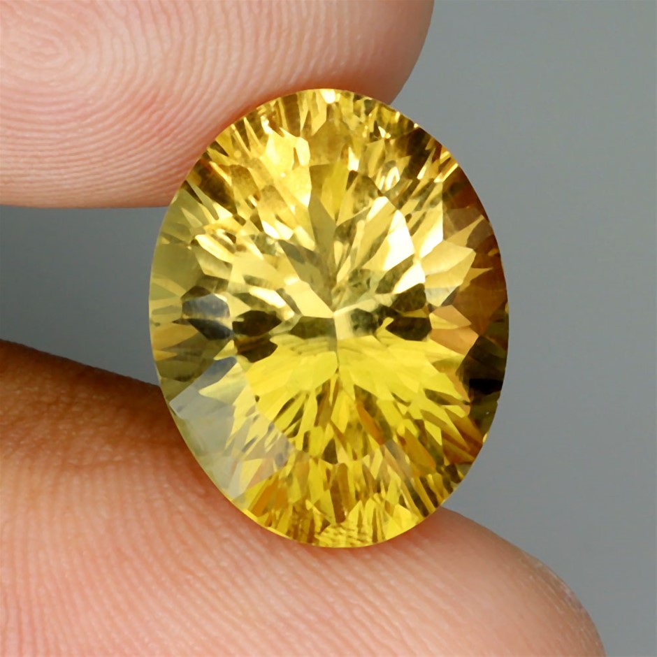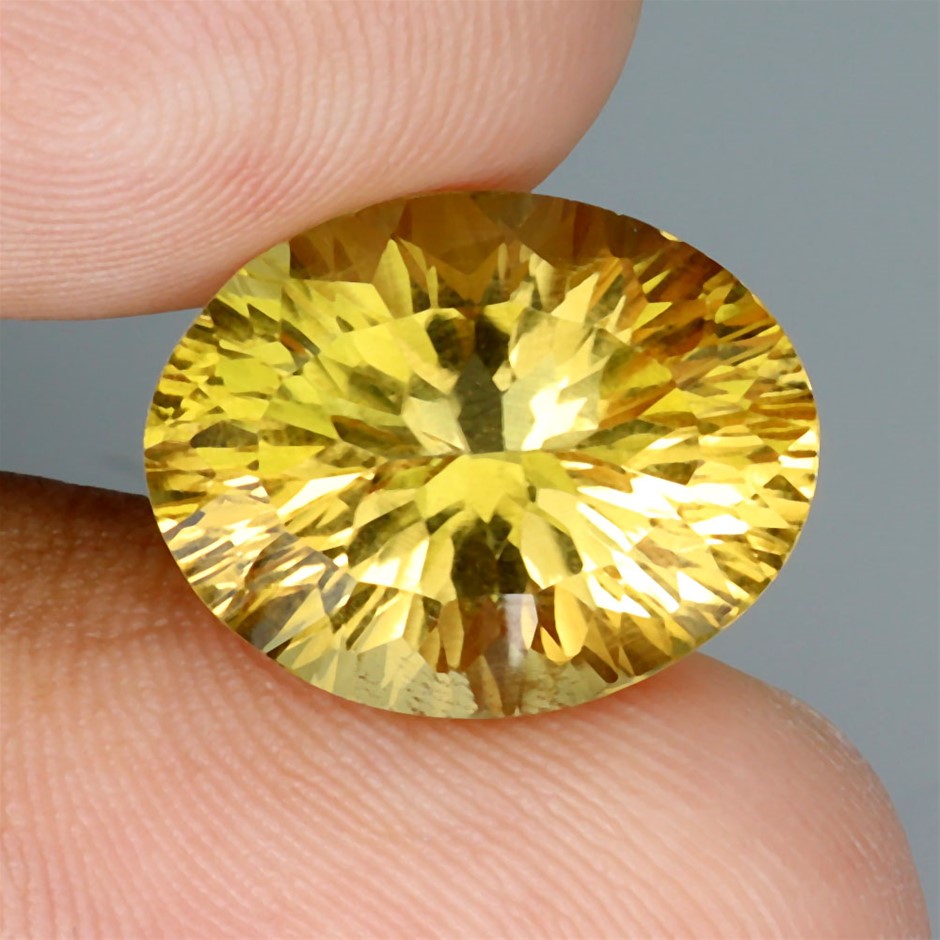 8.72ct Oval Concave Cut Yellow Citrine Gemstones - 1Pc