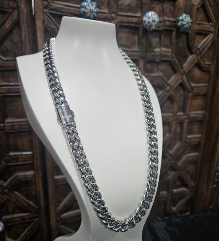 Italy 18K Triple White Gold Plated Cuban Chain (18KGP/Italy)stamped-60cm-12mm