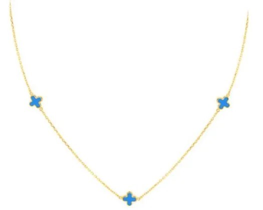 9K YELLOW GOLD TURQUOISE PETAL NECKLACE 41-43cm