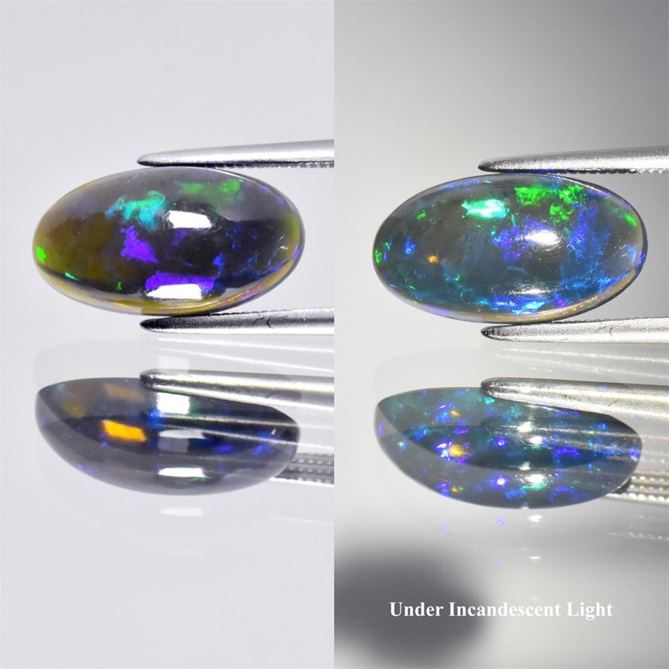 2.62ct Oval Cabochon Cut Play Of Color Black Opal Gemstones - 1Pc