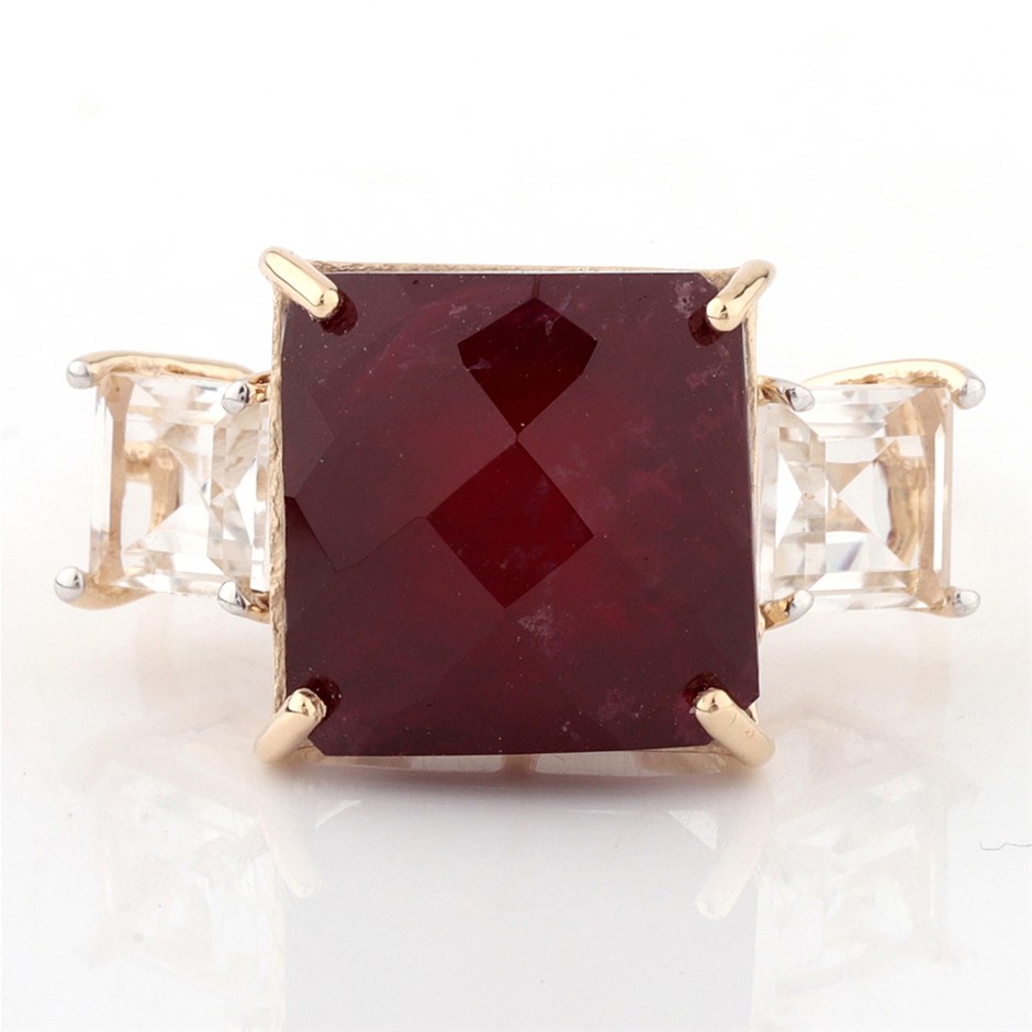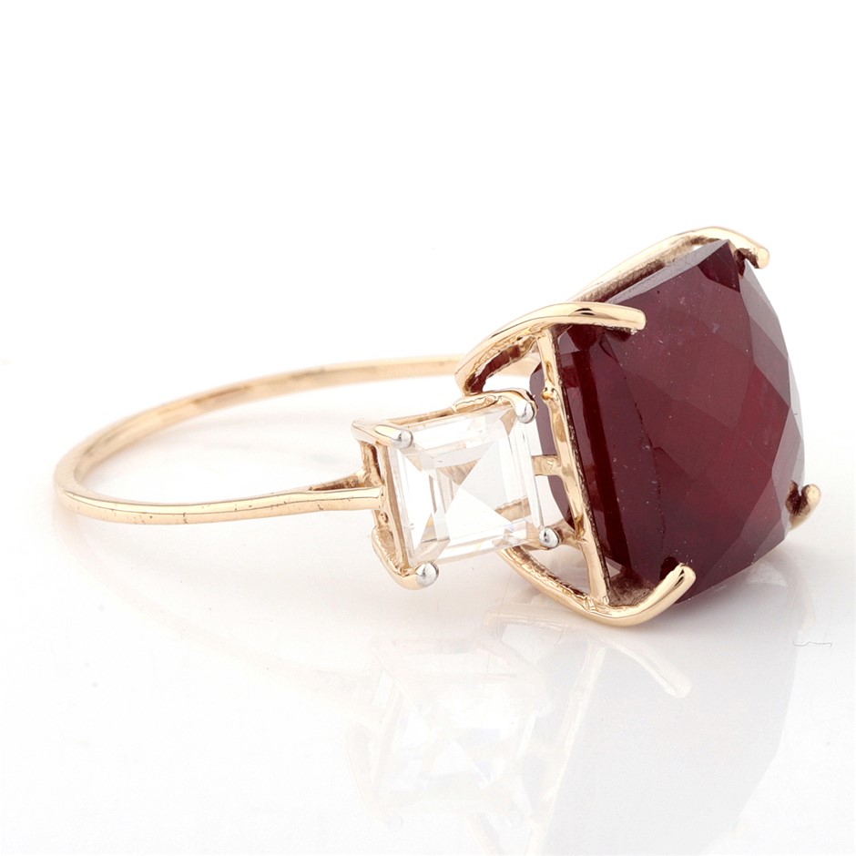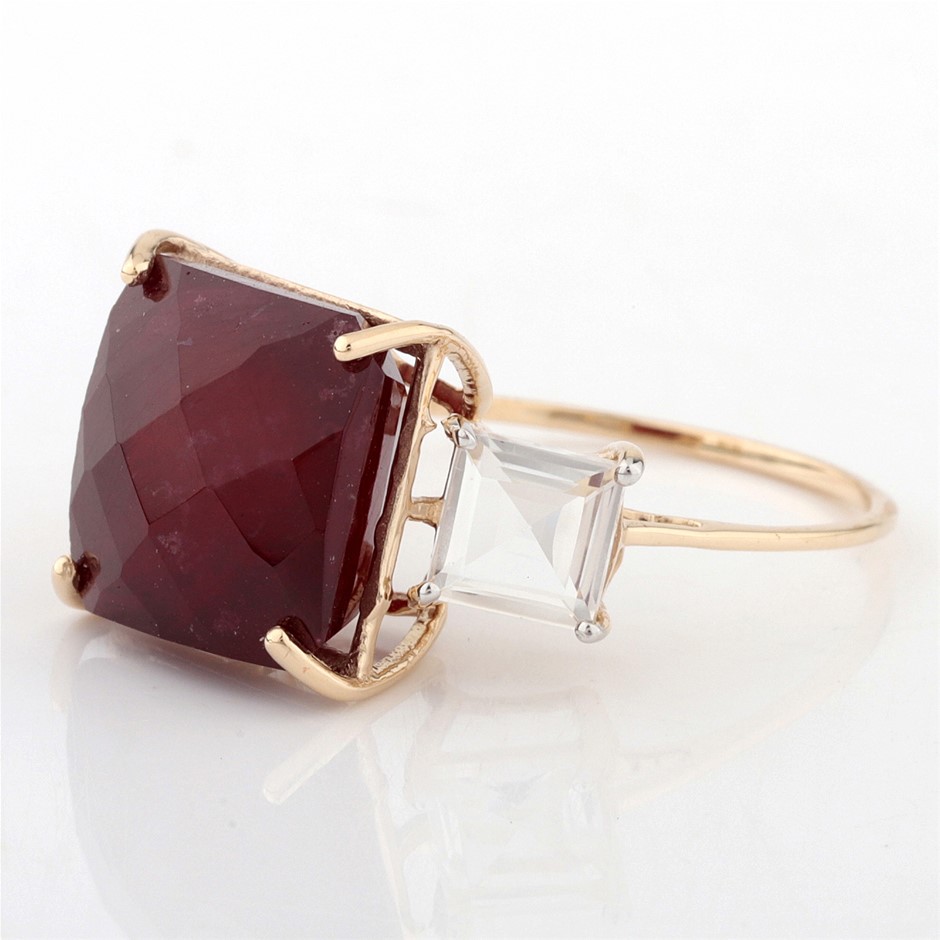 Yellow Gold Natural Ruby / Natural White Topaz Ring with Valuation
