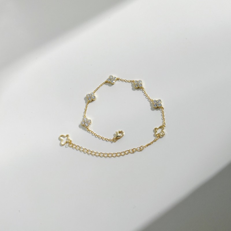 Dainty Four Leaf Clover Simulated Diamonds 925 Silver Tennis Bracelet